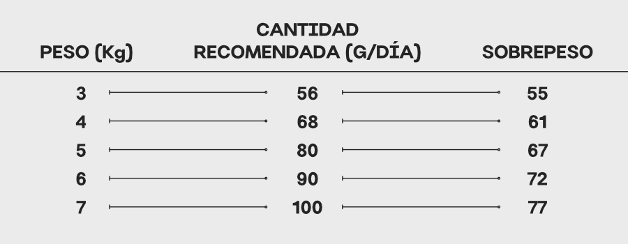 Proteína bruta 30%. Aceites y grasas brutos 13%. Fibras brutas 2,50%. Ceniza bruta 7%. Calcio 1,40%. Fósforo1,10%, Energía metabolizable 4,000 kcal/kg.